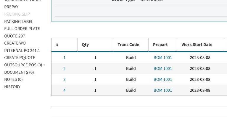 Now let’s look at the below order for a single line building BOM 1002 with a work start date of 8/8/2023.